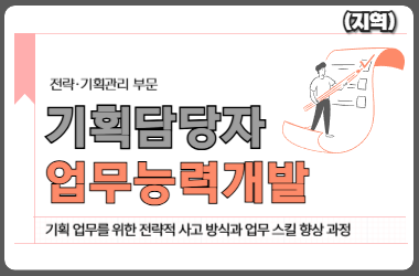 - 기획담당자가 성과를 향상시키는데 반드시 갖추어야 할 전략으로 사고하는(How to Think) 방법과 어떻게 할 것인가(So How)를 수행하는 역량을 함양하는 과정입니다.