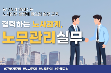 복수노조 하에 노무관리 | 최근 집단적 노사관계 주요 이슈 노동조합법상 노동조합 설립 및 운영 실무 노동조합법상 단체교섭 및 단체협약 체결 실무 노동조합법상 노동쟁의와 쟁의행위 발생시 대응 실무 노동조합법상 조정제도와 부당노동행위 구제제도 실무 |