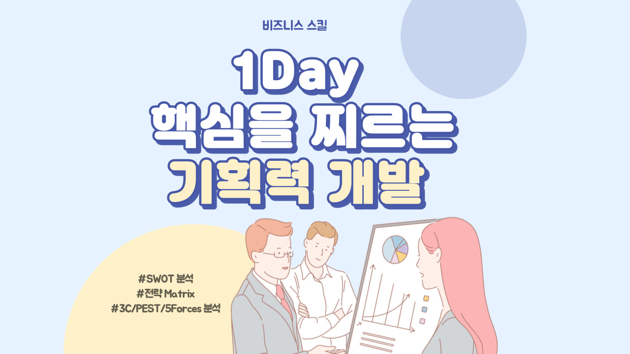 본 과정은 성공적인 기획을 위해 갖추어야 할 3대 핵심역량(창의력, 논리력, 표현력)을 주요 핵심 위주로 학습하고, 다양한 사례연구를 통해 실무에 적용할 시사점을 얻을 수 있도록 설계되었습니다.