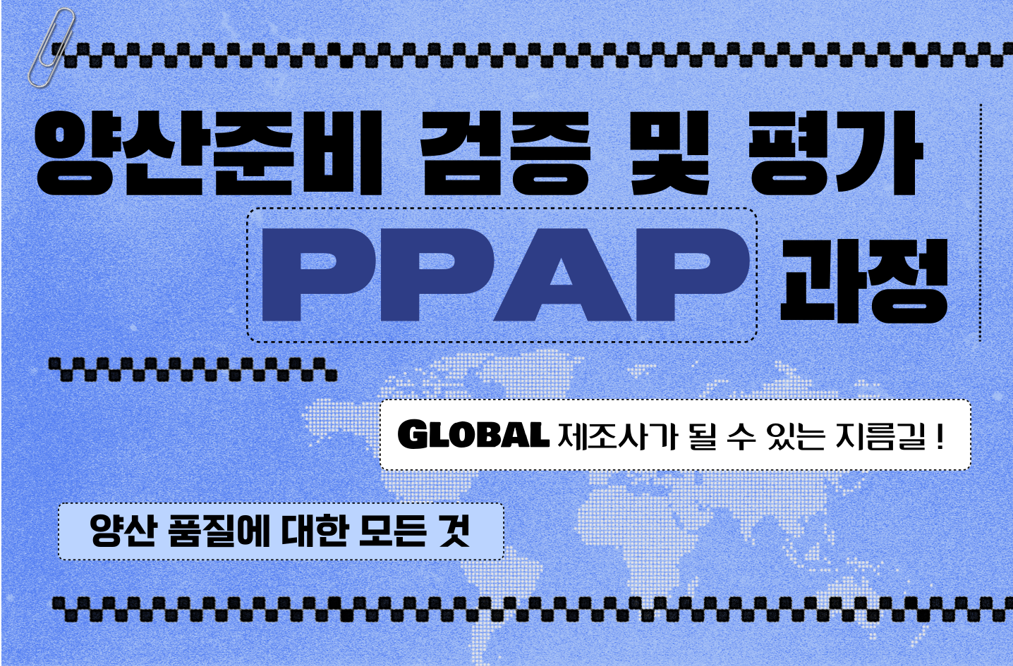 2일차 | o 공정 양산 이관 프로세스 - 글로벌 제조사의 양산 이관 프로세스 - 양산 이관 평가 핵심 항목 이해 - 양산 Capacity 분석·평가 이론 및 실습 - 선행 양산 문제점(Open Issue)의 효과적인 관리 방법 o 양산 초기 품질 관리 프로세스 - 양산부품 승인절차 PPAP(Production Part Approval Process)란? |