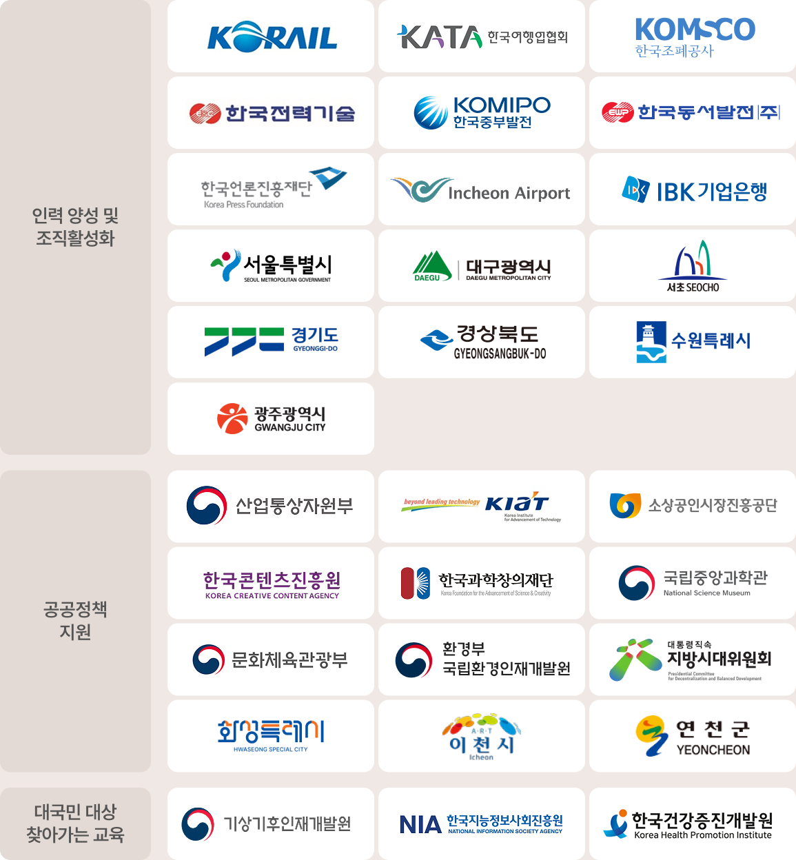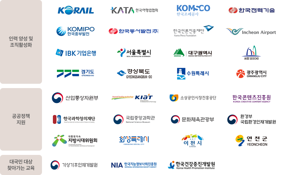 차별화된 프로그램 기획력, 교육장, 강사 / 퍼실리테이터, 운영진 등 원스톱 교육 서비스 제공